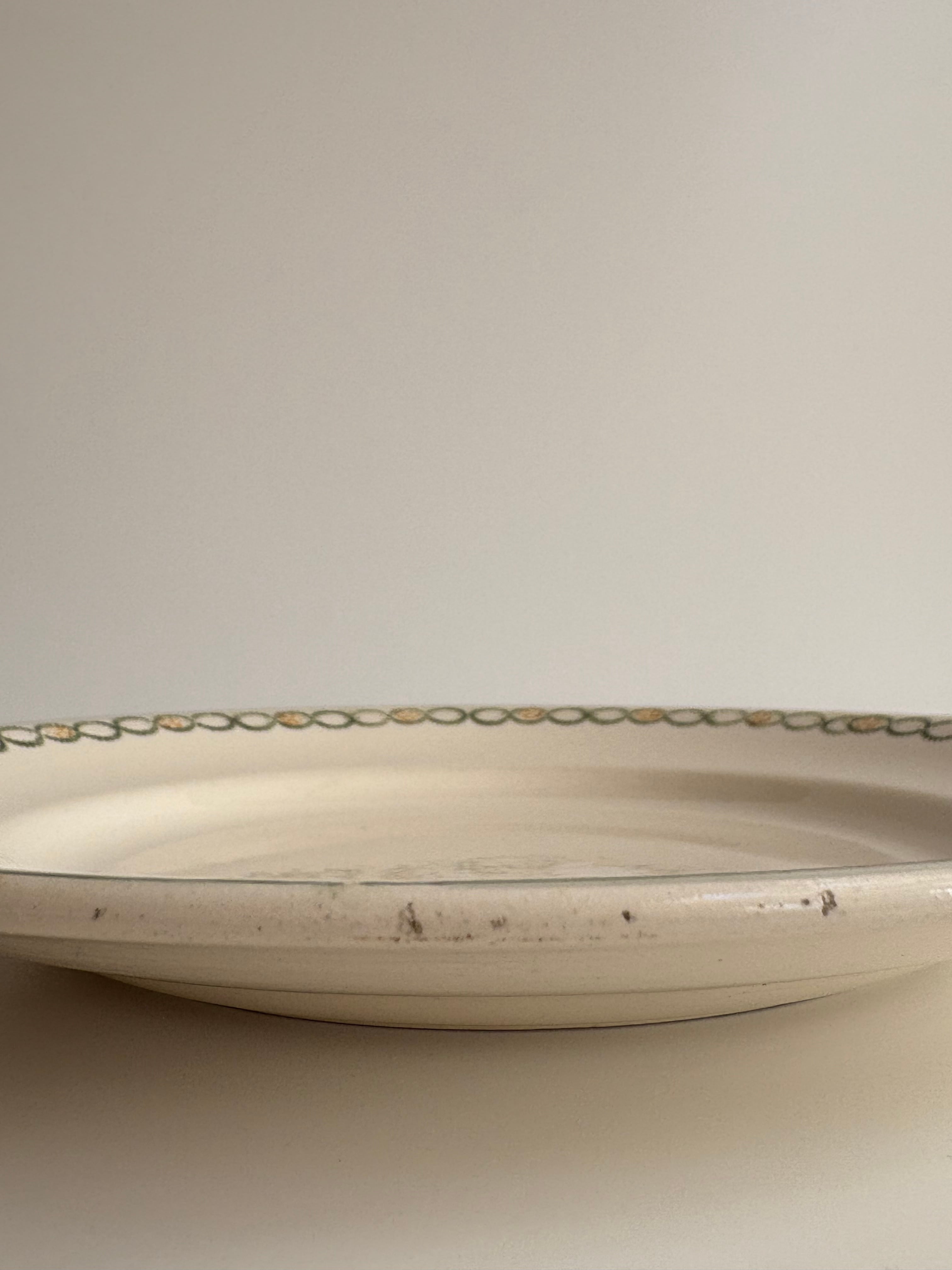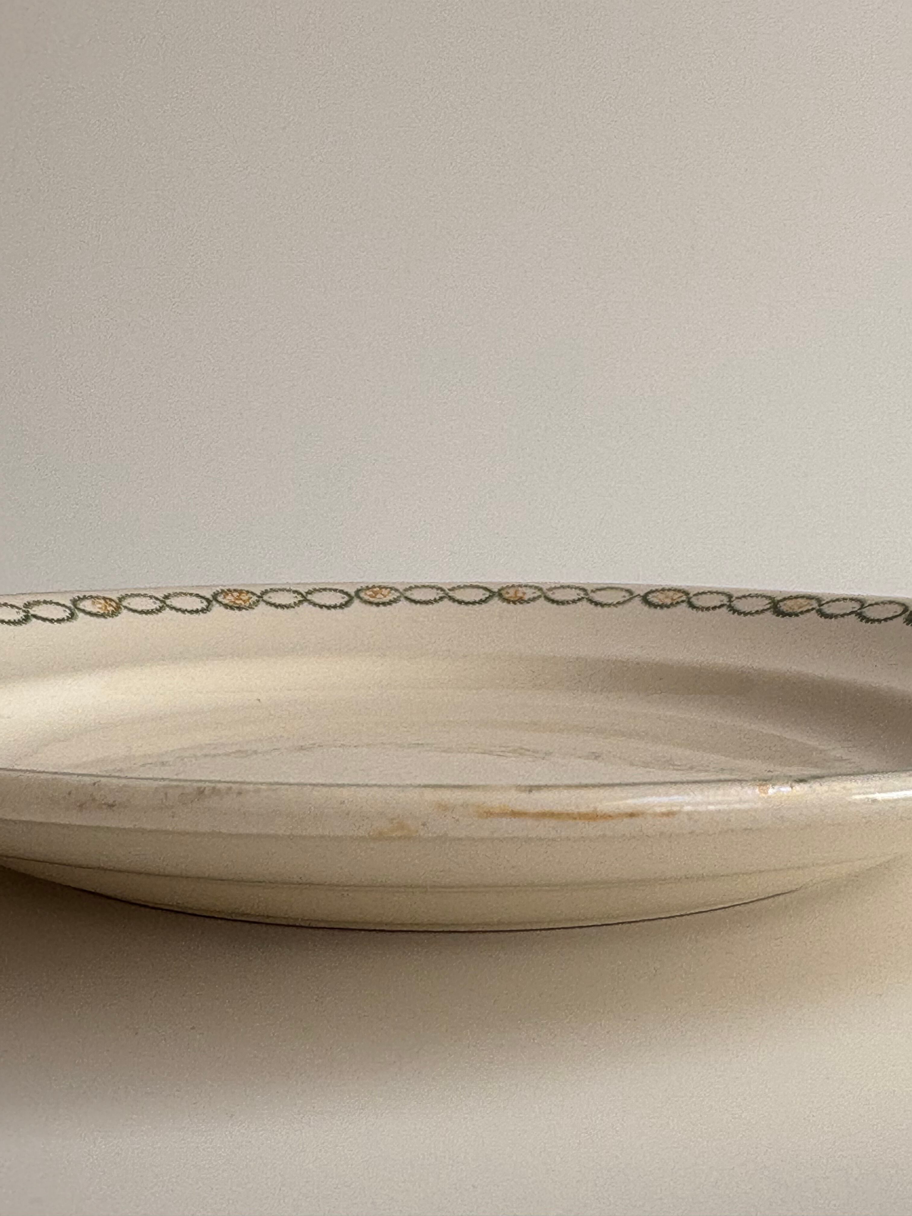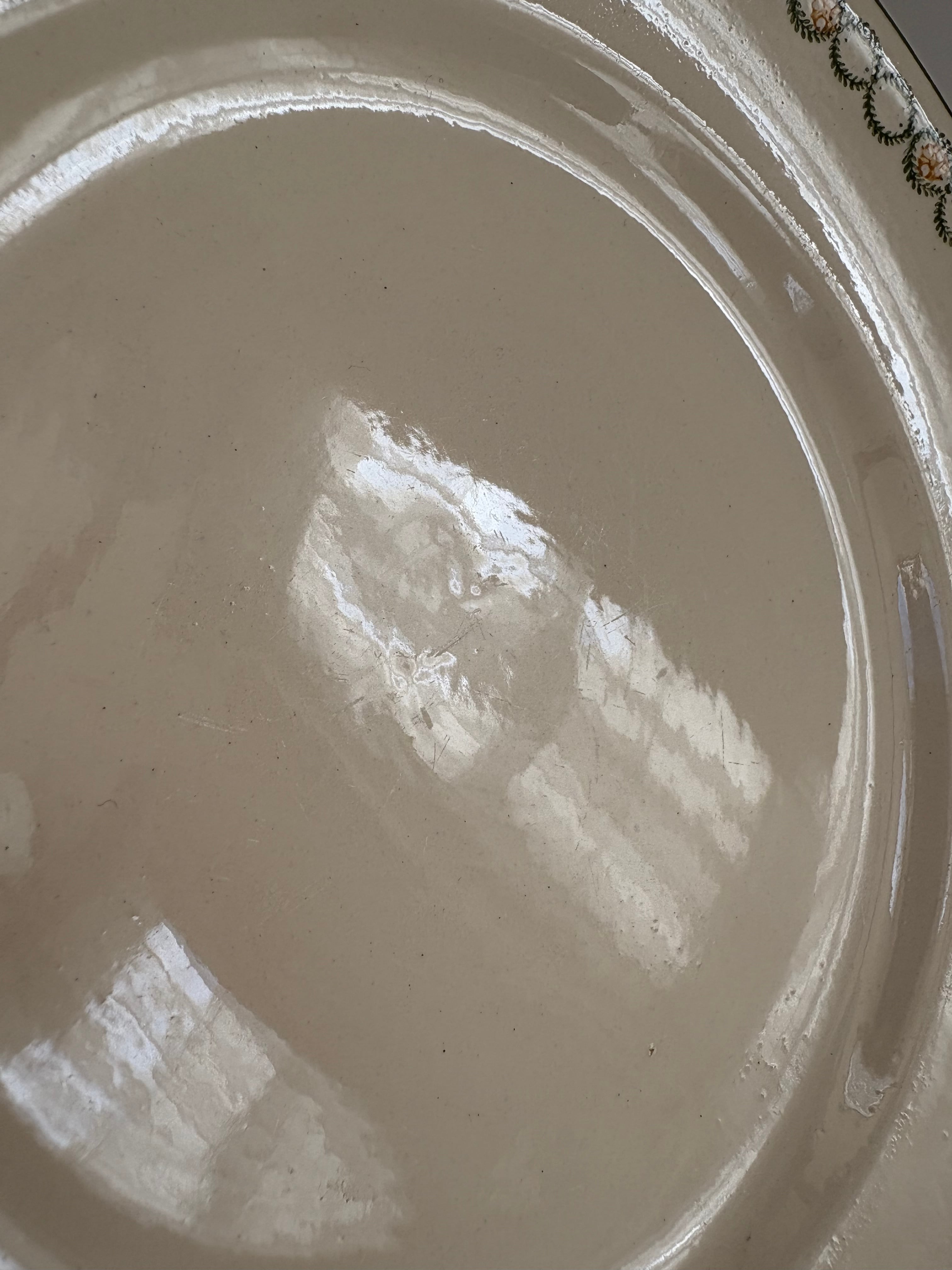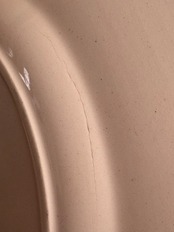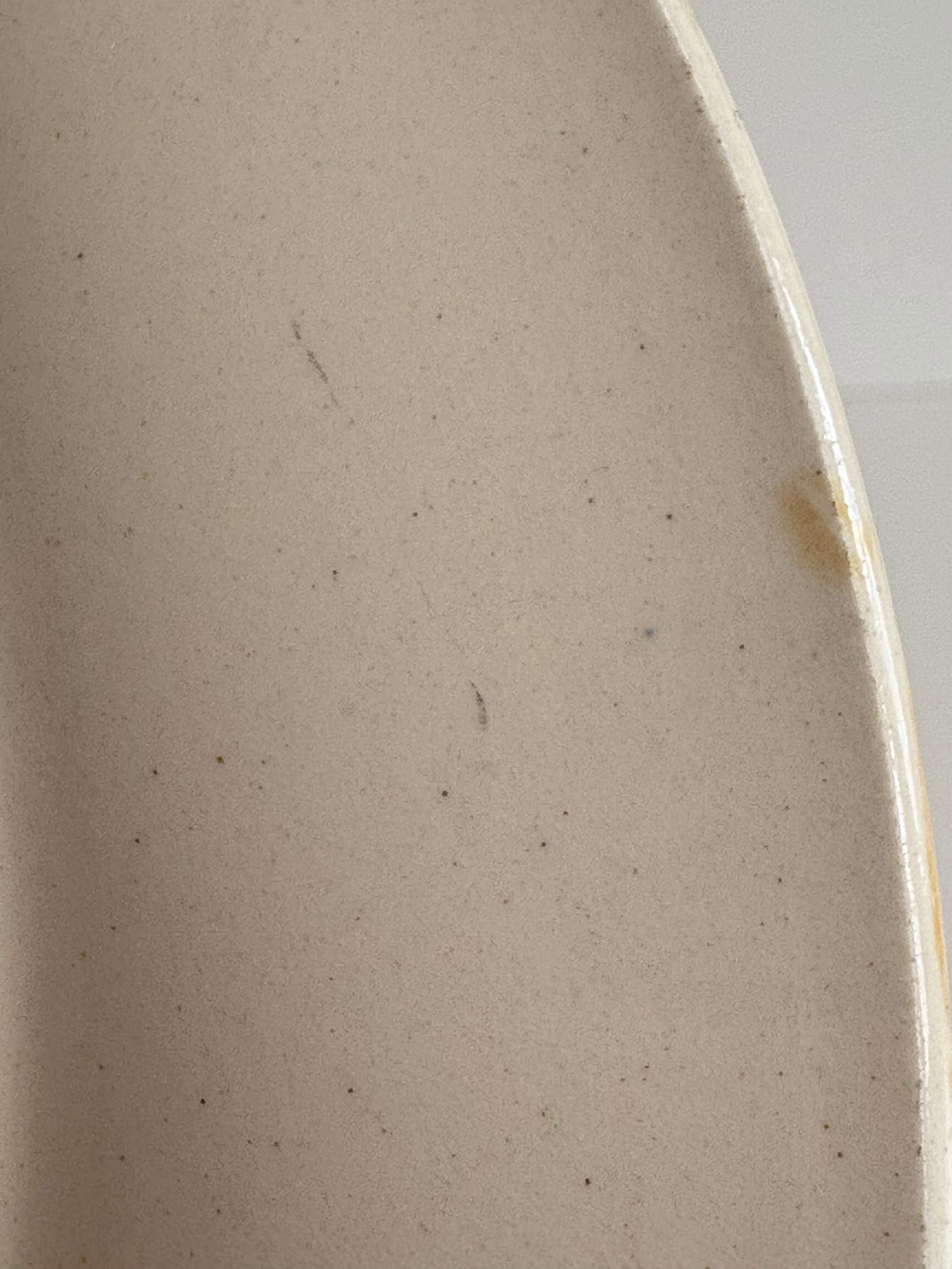 ⨳コンディション カトラリー傷、経年による擦れ、色付きあり。裏面から表面にかけて、素地に沿ったごく細い線状の跡が1か所見られます。現状、段差や欠けはなく、器の形状は保たれています。