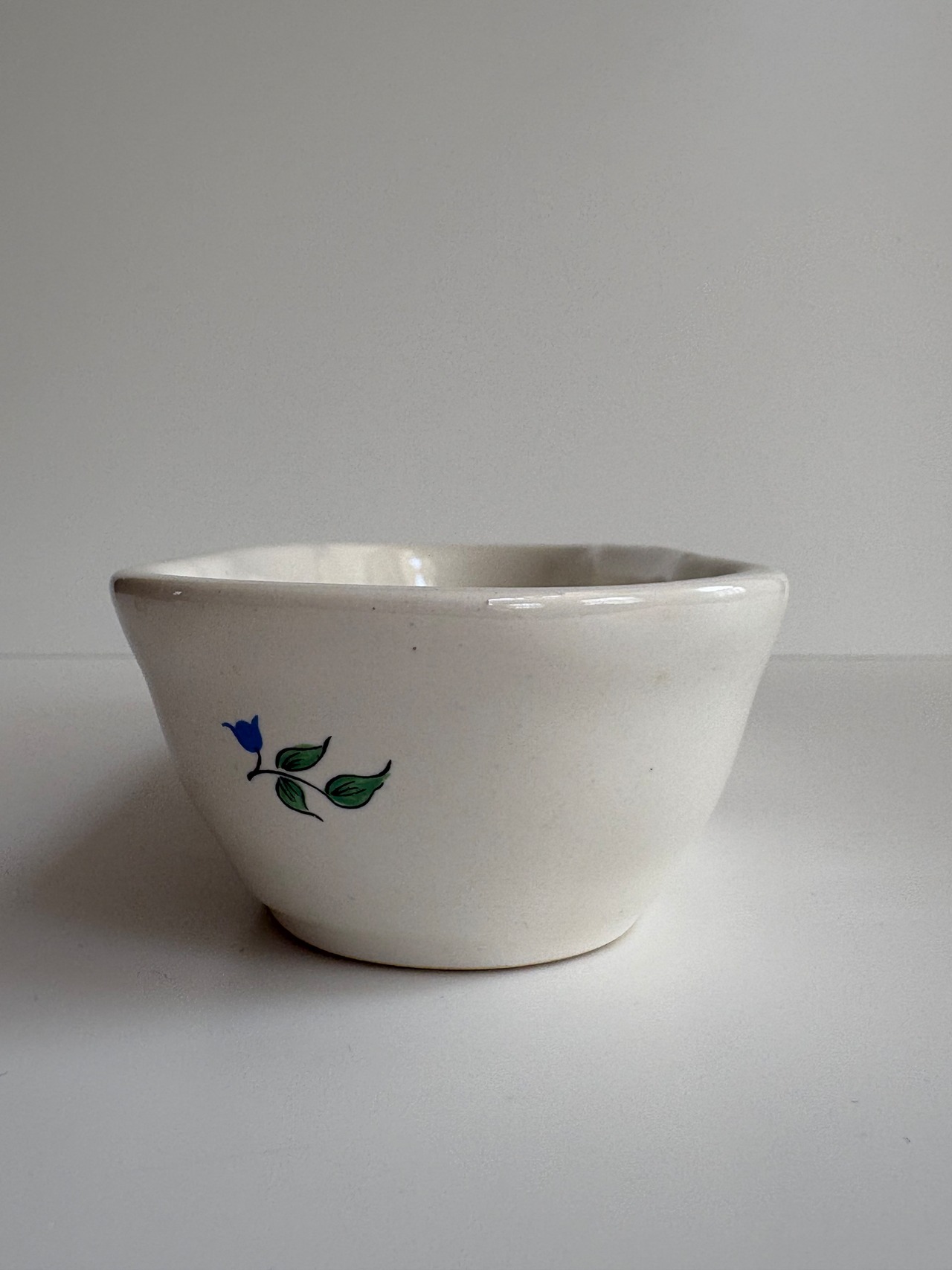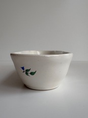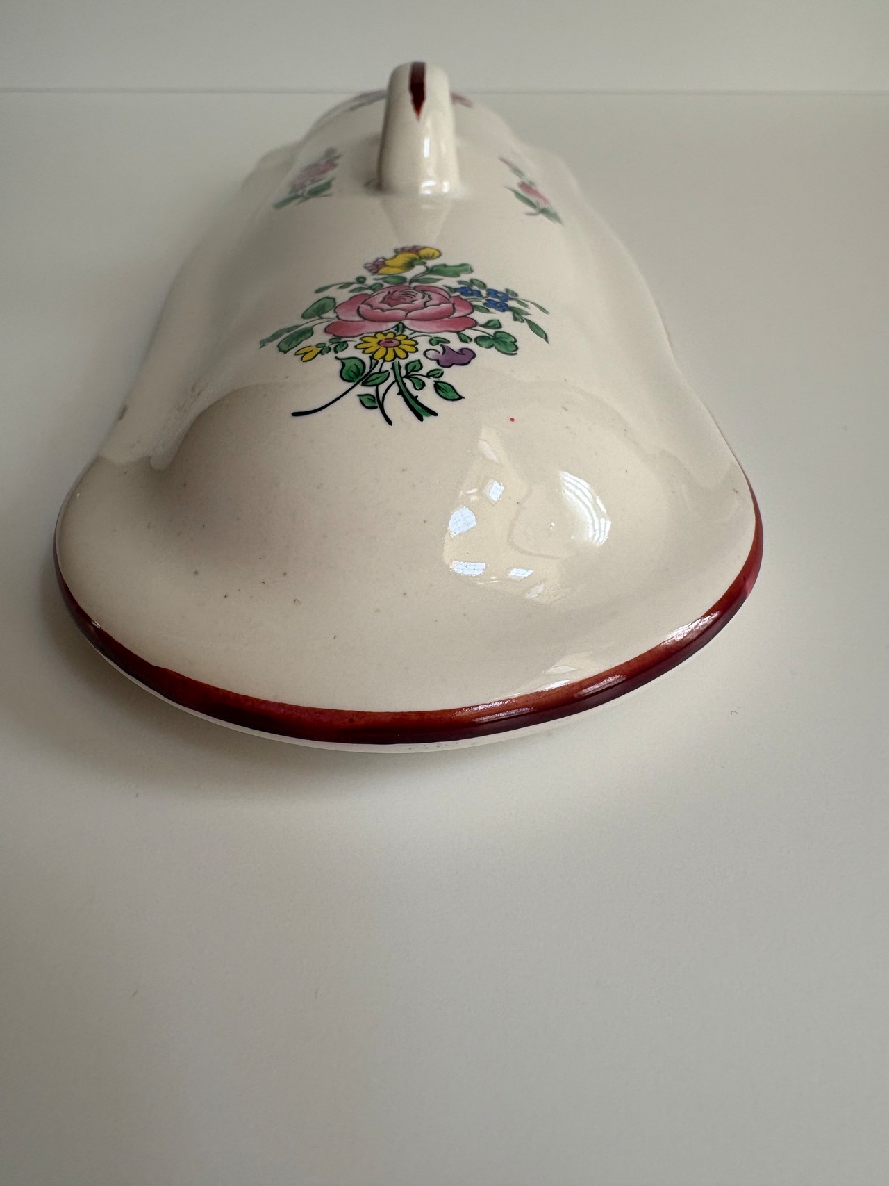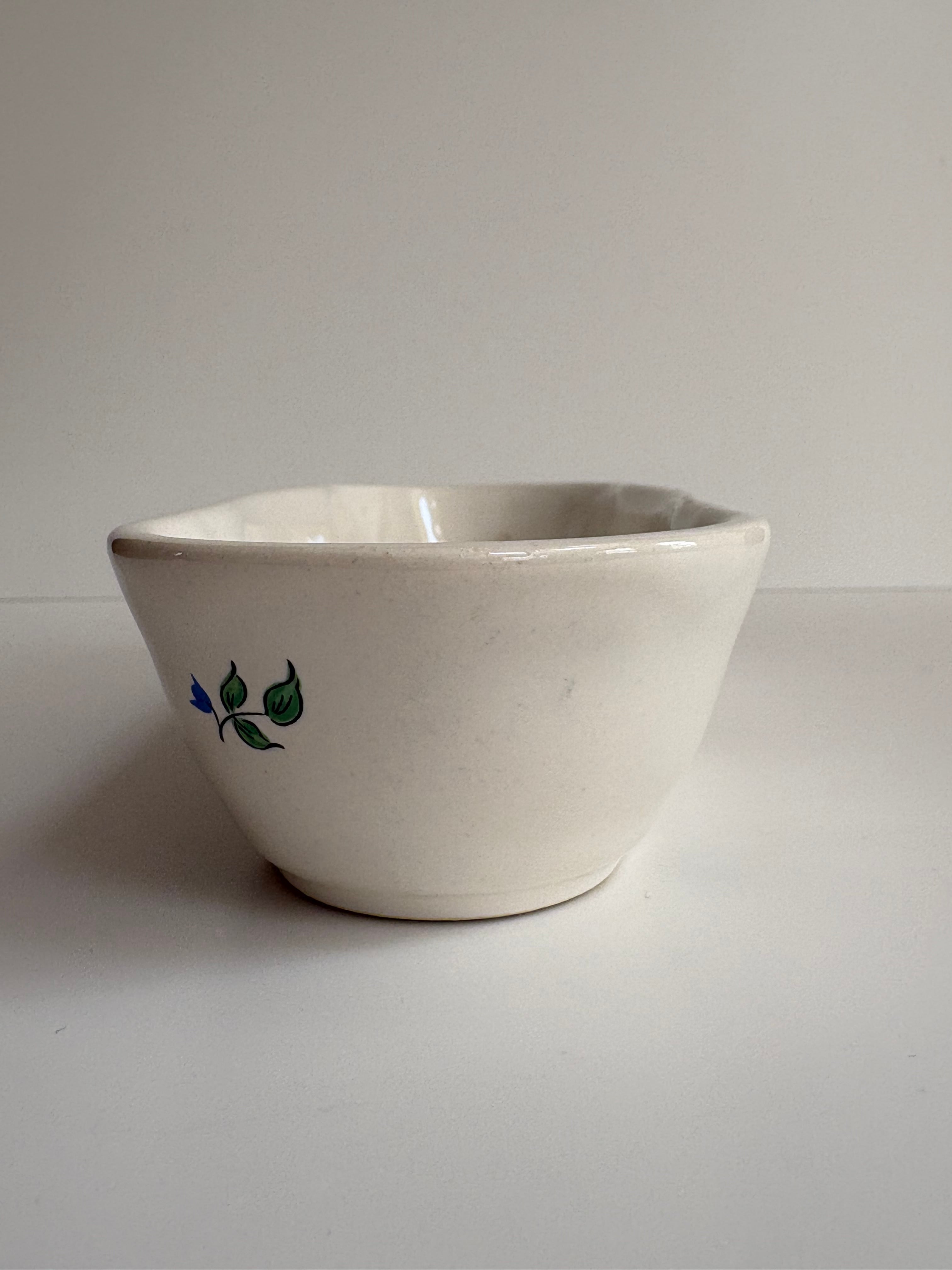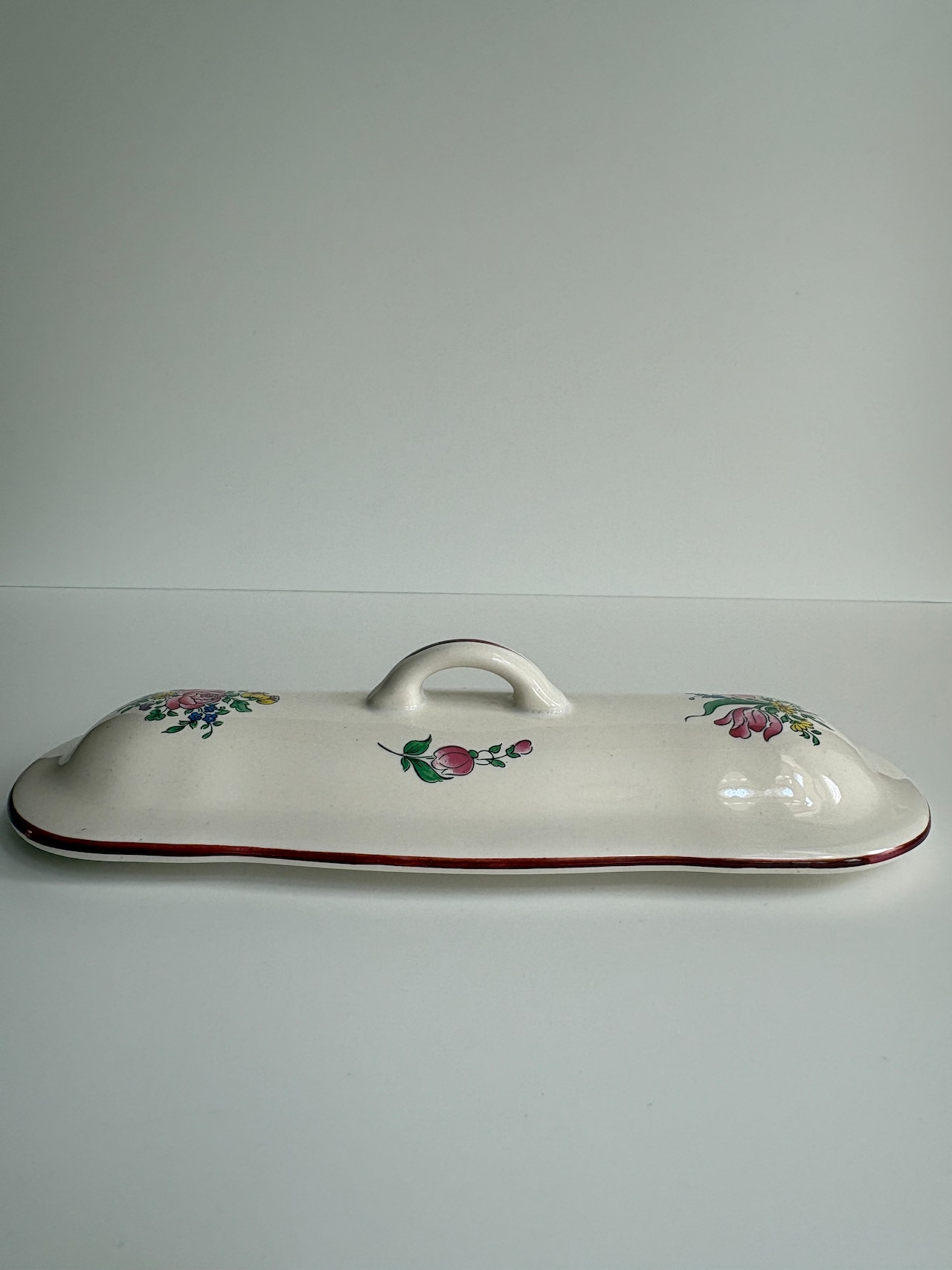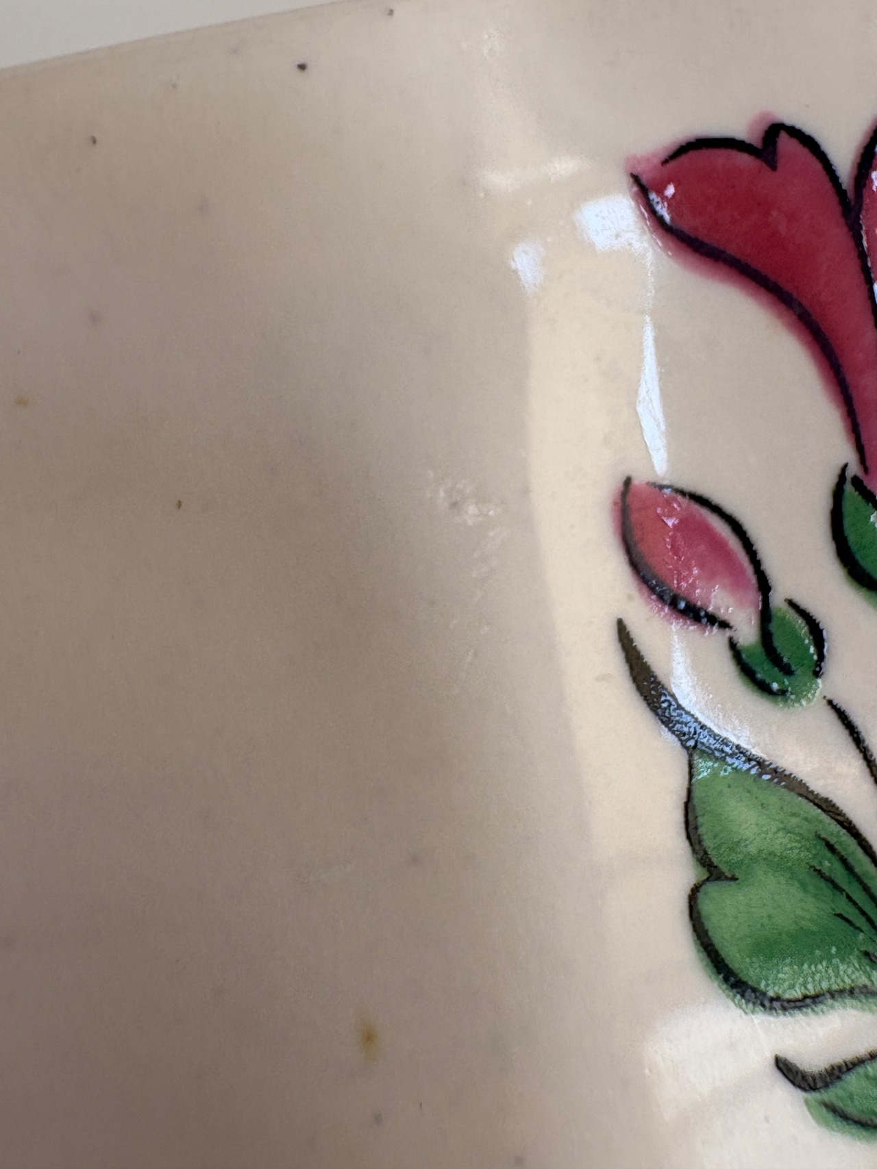 小花の絵付けと赤いライン。