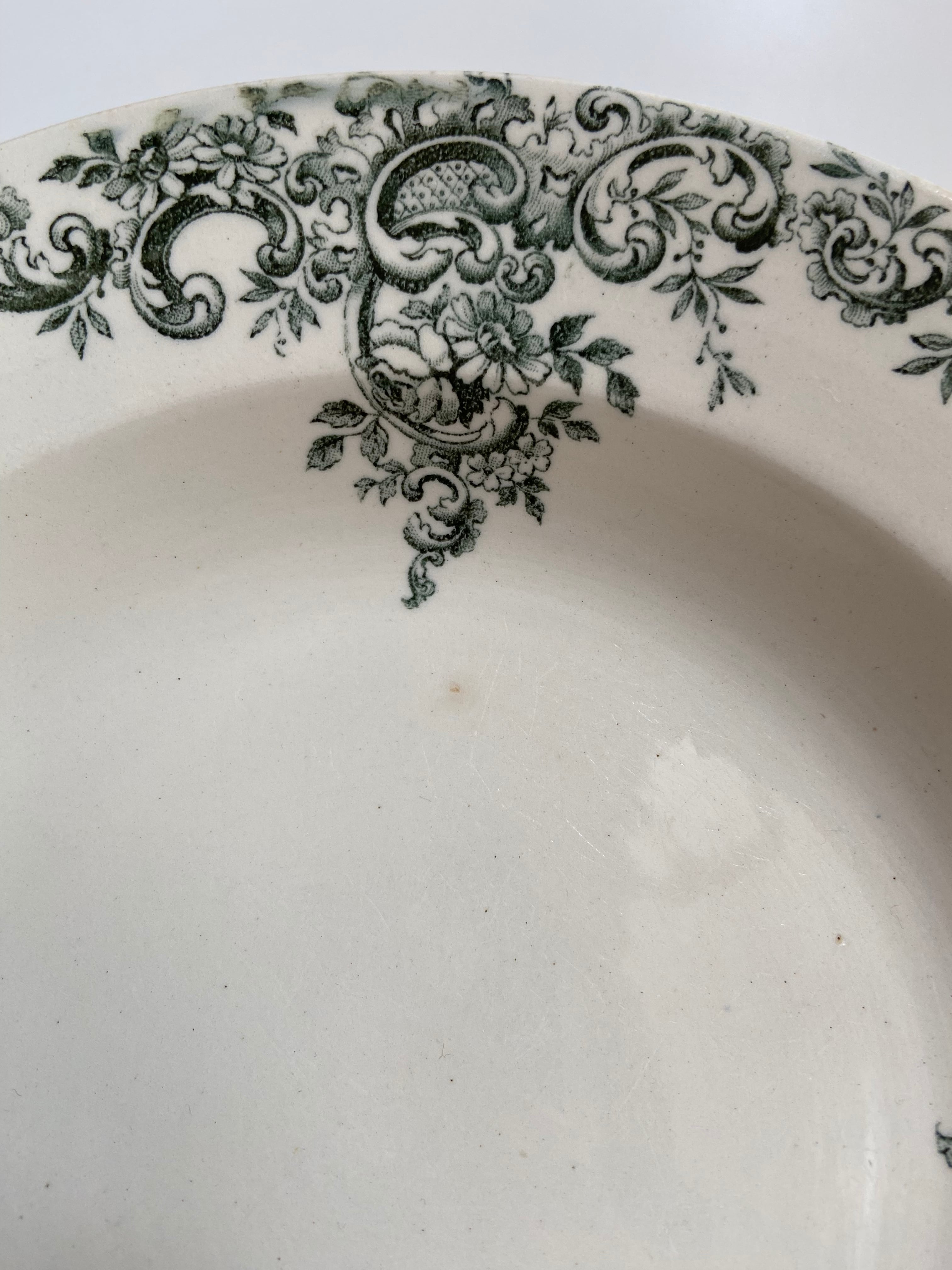 落ち着いたグリーンで描かれたロカイユ模様が、