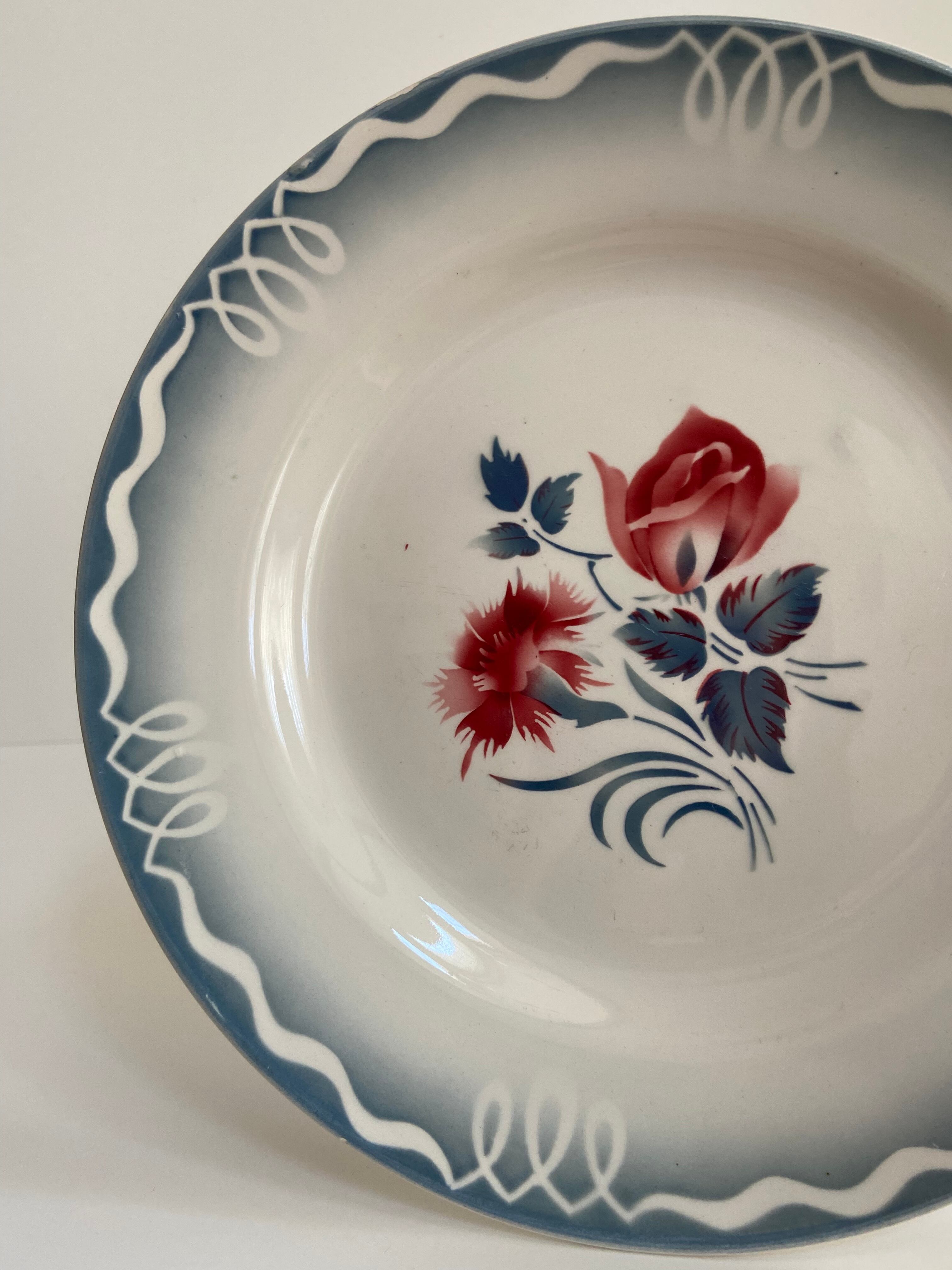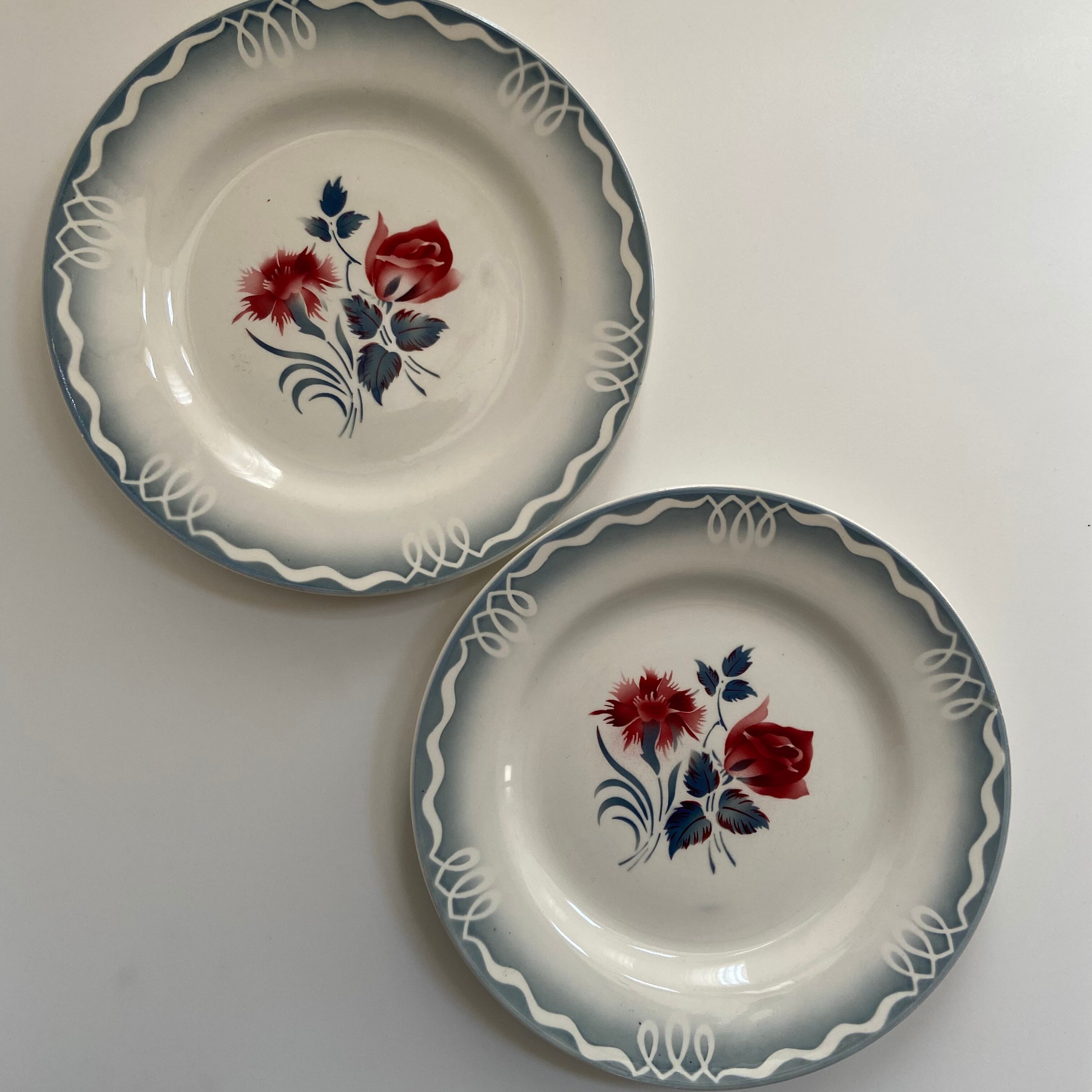 ⨳コンディション カトラリー傷、側面にかすかなチップ、経年による汚れあり。1枚のお皿について、側面から上部にかけての場所に釉薬の削れあり。